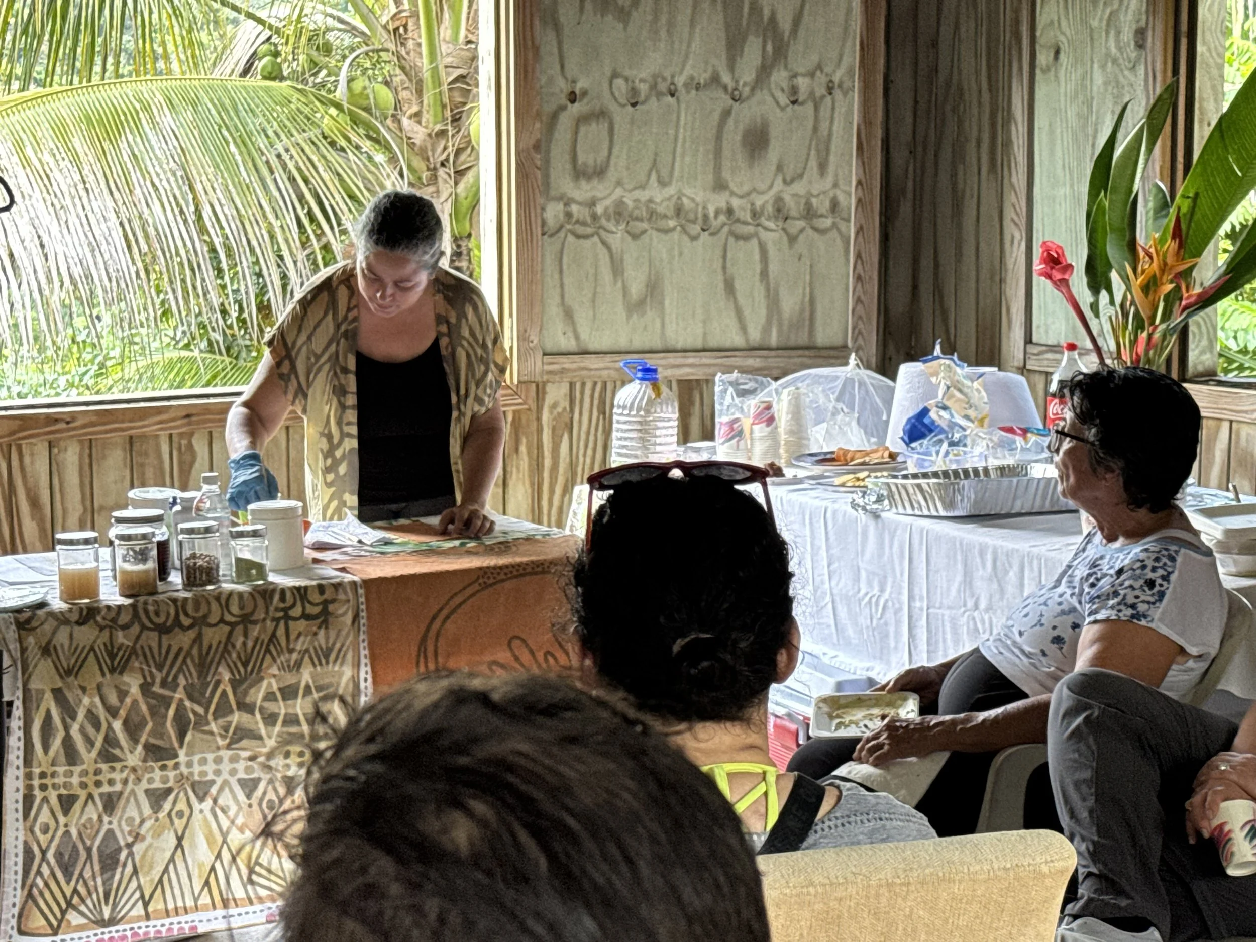 She was one of four participating artists in Murmullo Verde, a collaborative exhibition in which Aimee Siberon Arias (Artfull Forest) was also a participant. Pictured here, Gladys shares her creative process and research during a public talk, offering insight into her relationship with color, fiber, and place.